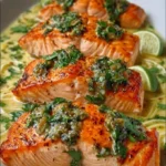 Imagine the moment you pull a beautifully baked salmon fillet from the oven, the tantalizing aroma enveloping your kitchen with the promise of flavor and satisfaction. The golden-brown crust glistens invitingly, a burst of zesty green salsa verde neatly perched on top, waiting to awaken your taste buds. You take in the rich, buttery texture of the fish—a tender flake that melts in your mouth as you take your first bite. Each morsel harmonizes with the bright, tangy notes of salsa verde, elevating the dish to new taste dimensions. A hint of garlic and subtle smokiness from the paprika dance on your palate, and the zesty finish leaves you longing for more. This is not just a meal; it’s an experience—a delicious journey that takes you to culinary heaven.